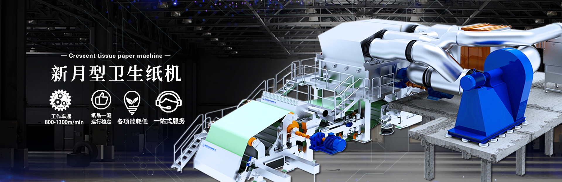 憑借著多年的技術積累和豐富的制造經驗,勇于創新和不斷進取,維亞公司于2015年隆重推出新月型高速衛生紙機系列產品。維亞新月型高速衛生紙機占地少、耗能低、零污染,運行穩、紙品優的特點很快受到了廣大用戶的青睞,并迅速的在高速衛生紙機行業確立了地位。